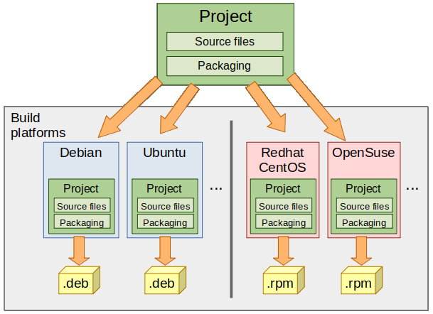 Depending on the type of linux distribution of each build platform, a DEB or RPM package is generated.